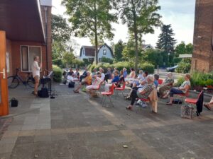 Omdat de versoepelde coronamaatregelen daarvoor ruimte bieden, heeft Sparkling Voices na lange tijd weer samen gerepeteerd. Onder perfecte weersomstandigheden hebben zo’n 30 leden deelgenomen aan deze repetitie in de open lucht en wat gaf dat weer een goed gevoel! Met groot enthousiasme is er gewerkt aan het repertoire voor de eerste medewerking op 2 oktober a.s. ter gelegenheid van de opening van het nieuwe gemeentehuis van Albrandswaard.